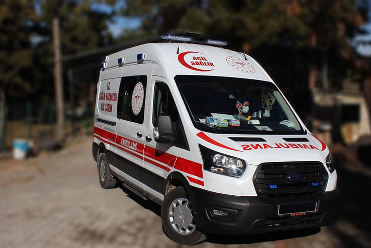 Kırmızı şeritli ambulanslar genellikle acil ve kritik hastaların naklinde kullanılır. Mavi şeritli ambulanslara göre daha nitelikli teknik ve tıbbi donanıma sahiptirler. Bu ambulansların ücreti daha pahalı olabilir.